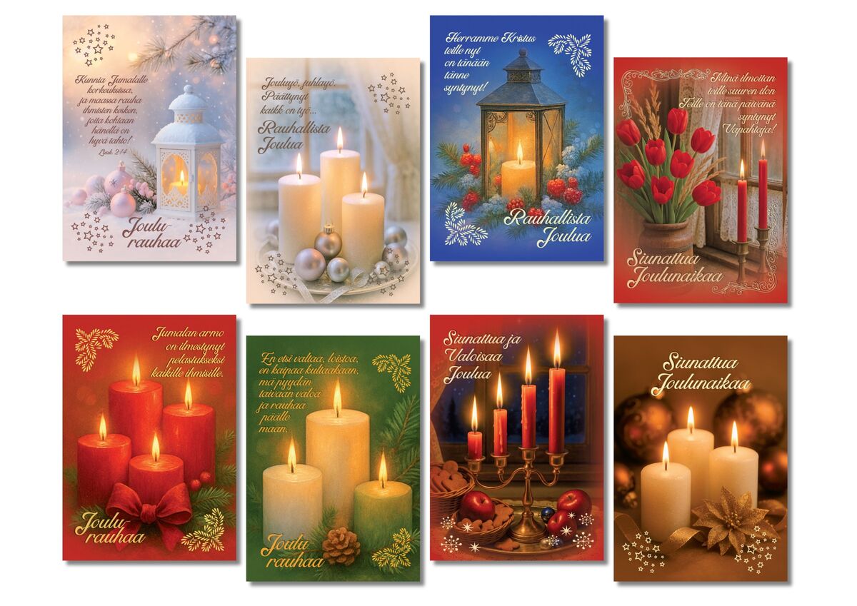 "Joulun Valoa-hengellinen" on kaunis joulukortti-sarjamme, jossa hengelliset tekstit ja kauniit kynttilä-kuvat luovat tunnelmallisen kokonaisuuden.