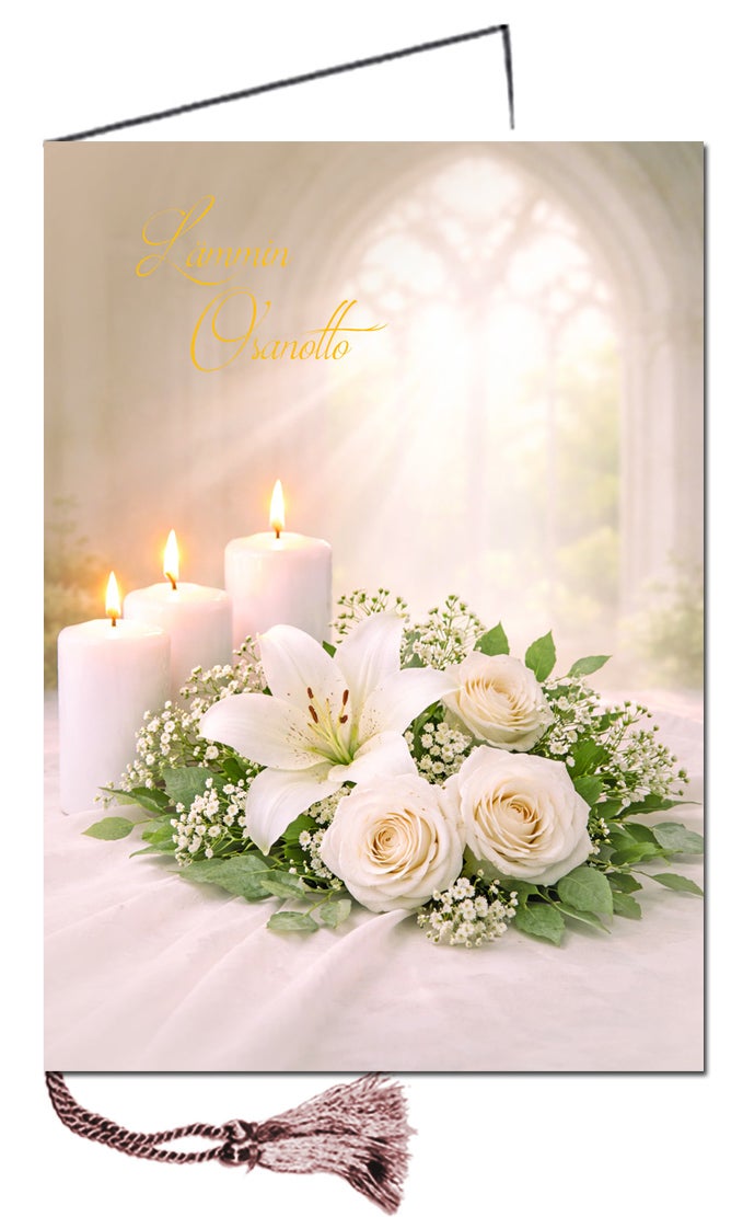ja osanottotekstillä painettuja tai meidän valmiista muistolause-valikoimasta toteutettuja.