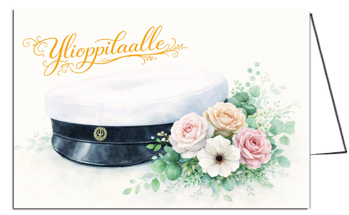 Kaunis - 2-osainen ONNITTELUKORTTI YLIOPPILAALLE, jota voit tilata vaikka vain yhden kappaleen!