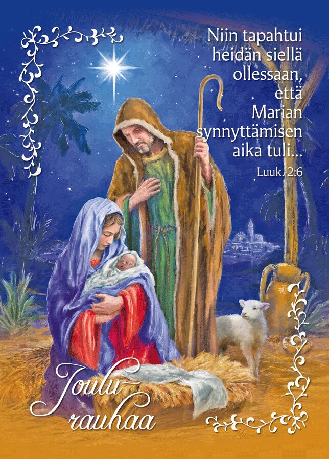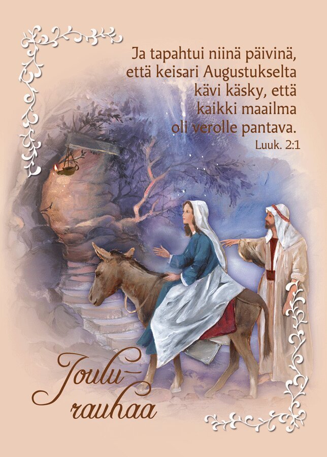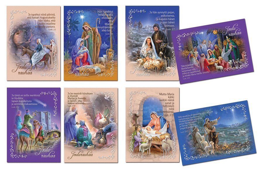 "Ja tapahtui niinä päivinä" on kaunis joulukortti-sarjamme, jossa jouluevankeliumin teksti ja kuvitus luovat tunnelmallisen kokonaisuuden.